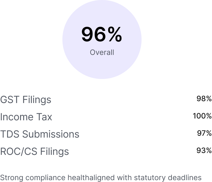 Expert handling of GST, Income Tax, TDS, and Company Secretary compliances.