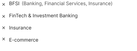 Our financial expertise is adaptable and effective across multiple sectors. We work with B2B & B2C companies, helping them build robust financial functions. However, due to the specific and highly complex regulatory environments, we do not currently serve clients in the following sectors: